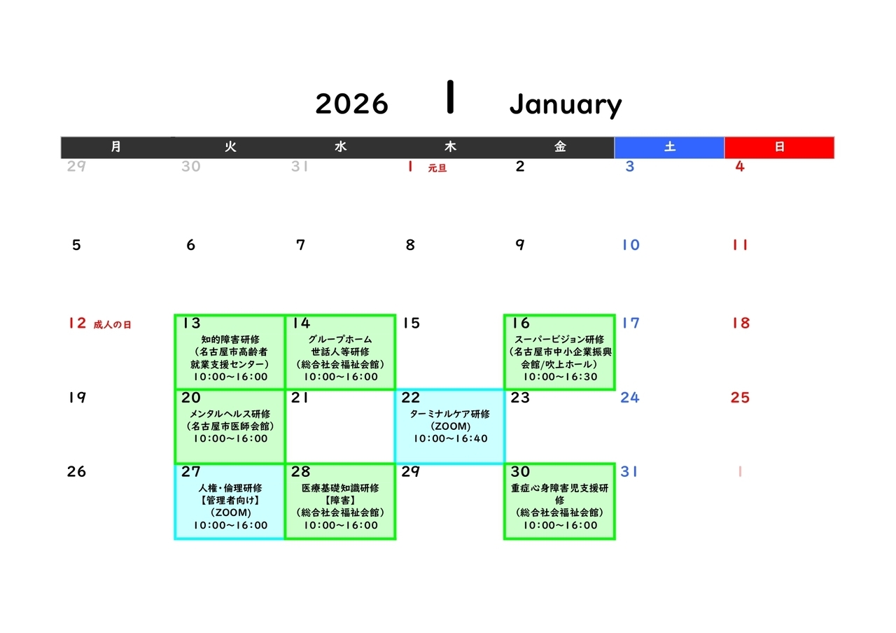 | 1/13 | 10 知的障害研修(1/13集合) | 受付終了 |