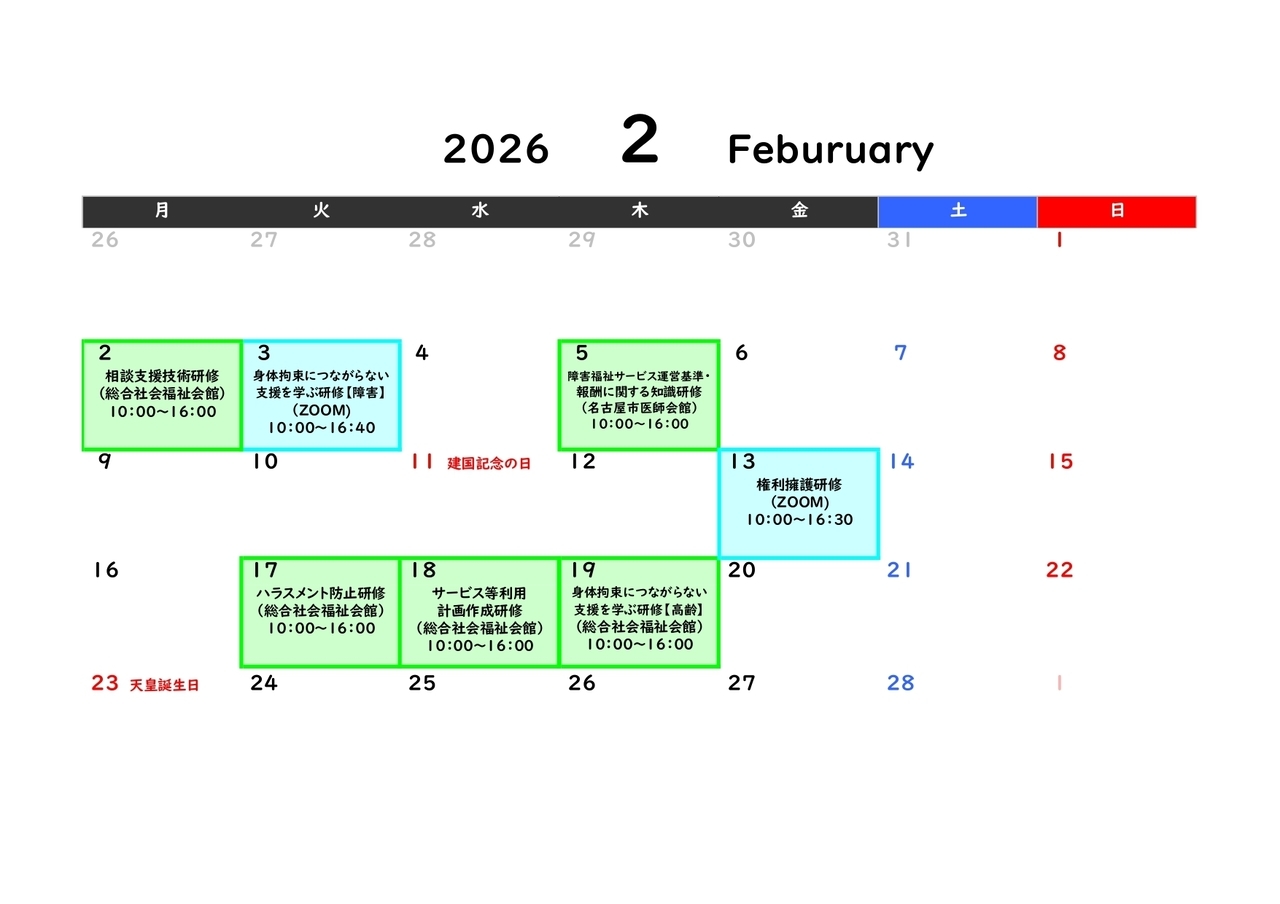 | 2/13 | 21 権利擁護研修(2/13オンライン) | 追加募集中 |